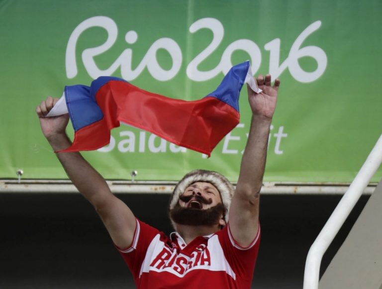 Ruský fanúšik počas zápasu turnaja vo vódnom póle. Rio de Janeiro, 11. august 2016. Foto: SITA/AP