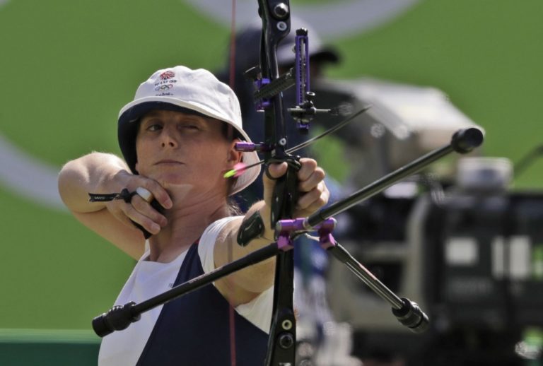 Britská lukostrelkyňa Naomi Folkardová počas osemfinále v súťaži jednotlivkýň. Rio de Janeiro, 11. august 2016. Foto: SITA/AP