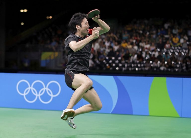 Japonský stolný tenista Jun Mizutani počas semifinálového zápasu proti Číňanovi Maovi Longovi. Rio de Janeiro, 11. august 2016. Foto: SITA/AP