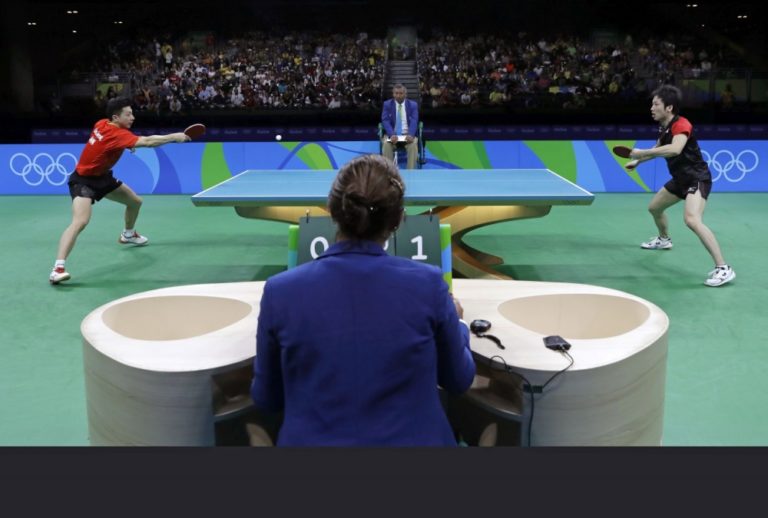 Semifinálový zápas turnaja stolných tenistov medzi Ma Longom z Číny a Japoncom Junom Mizutanim. Rio de Janeiro, 11. august 2016. Foto: SITA/AP
