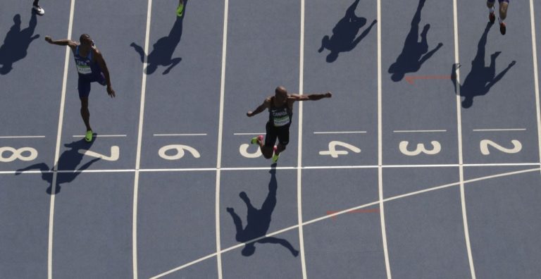 Desaťbojári v rámci jedného z rozbehov šprintu na 100 m. Rio de Janeiro, 17. august 2016. Foto: SITA/AP