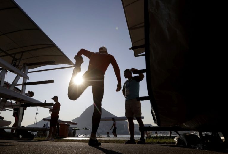 Moldavský reprezentant v rýchlostnej kanostike počas rozcvičky pred jednou zo stredajších rozjázd. Rio de Janeiro, 17. august 2016. Foto: SITA/AP