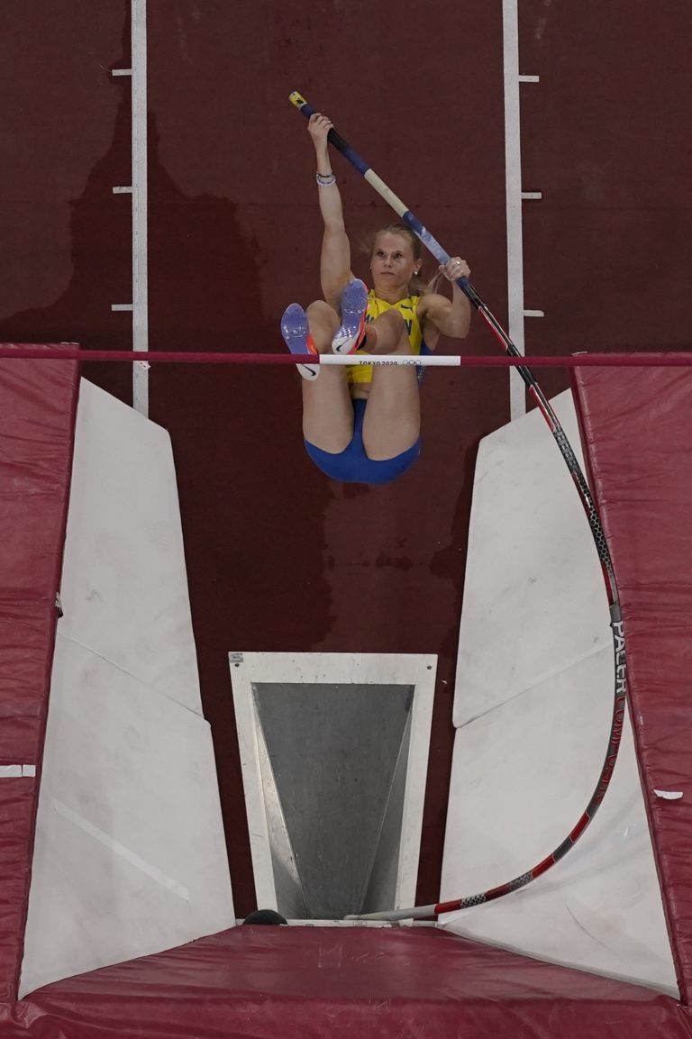 Švédska atlétka Michaela Meijerová počas skoku o žrdi na letnej olympiáde v Tokiu. Tokio, 2. august 2021. Foto: SITA/AP.