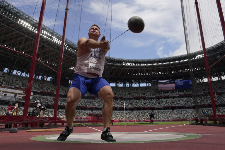 Kladivár Marcel Lomnický počas kvalifikácie na letnej olympiáde v Tokiu. Tokio, 2. august 2021. Foto. SITA/AP