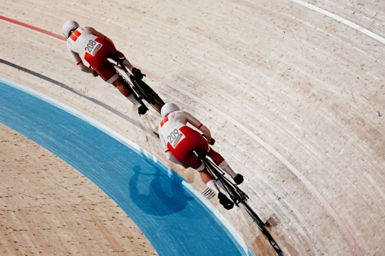 Poľské cyklistky Marlena Karwacková a los Urzulová počas dráhovej cyklistiky na letnej olympiáde v Tokiu. Izu, 2. august 2021. Foto. SITA/AP.