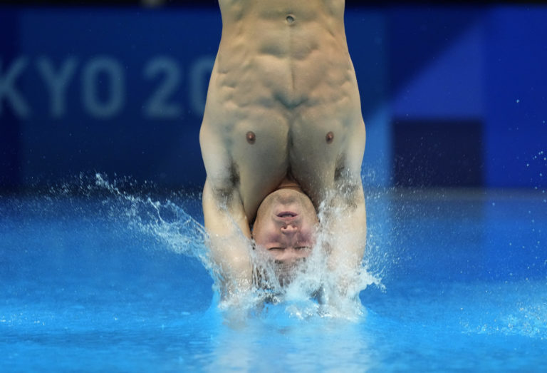 Španielsky reprezentant Alberto Arevalo Alcon počas kvalifikácie v skokoch do vody v kategórii 3 m doska na letnej olympiáde v Tokiu. Tokio, 2. august 2021. Foto: SITA/AP.