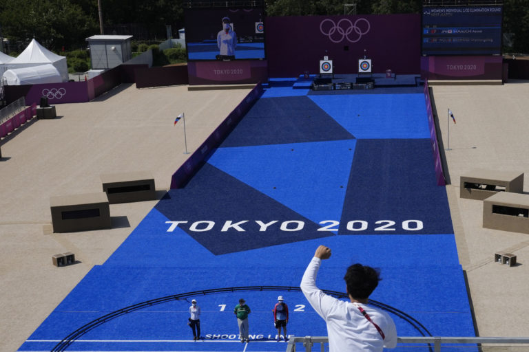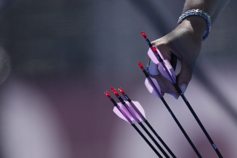 Detail na šípy, s ktorými strieľala Bieloruska Hanna Marusava počas letnej olympiády v Tokiu. Tokio, 28. júl 2021. Foto: SITA/AP