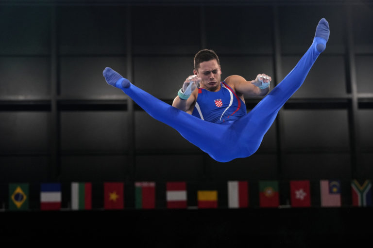Chorvátsky gymnasta Tin Srbic počas svojho vystúpenia na letnej olympiáde v Tokiu. Tokio, 3. august 2021. Foto: SITA/AP