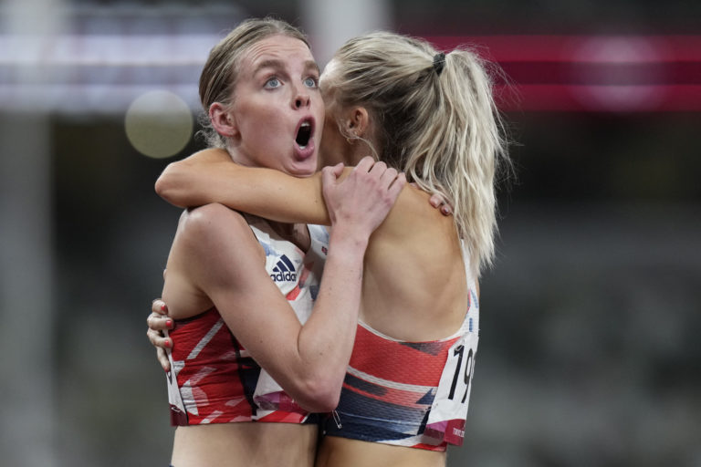 Reakcia Keely Hodgkinsonovej z Veľkej Británie po druhom mieste vo finálovom behu žien na 800 metrov na letnej olympiáde v Tokiu. Tokio, 3. august 2021. Foto: SITA/AP