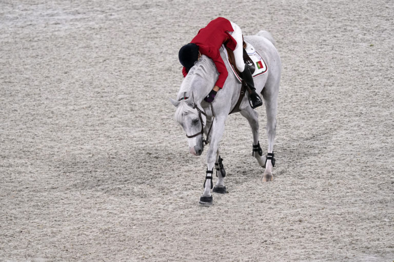Portugalčanka Luciana Diniz objíma svojho koňa s menom Vertigo du Desert po ich jazde na letnej olympiáde v Tokiu. Tokio, 3. august 2021. Foto: SITA/AP