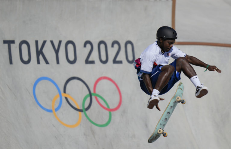 Americký skateboardista Zion Wright počas tréningu na letnej olympiáde v Tokiu. Tokio, 3. august 2021. Foto: SITA/AP