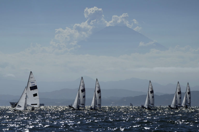 Jachty počas finále 470 žien na letnej olympiáde v Tokiu. Fudžisawa, 4. august 2021. Foto: SITA/AP.