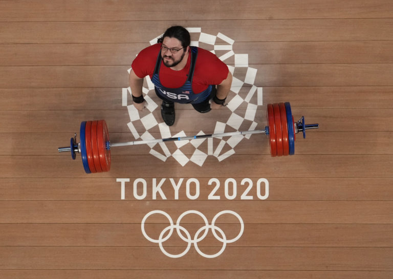Američan Morgan Caine Wilkes počas vpierania mužov +109kg na letnej olympiáde v Tokiu. Tokio, 4. august 2021. Foto: SITA/AP.