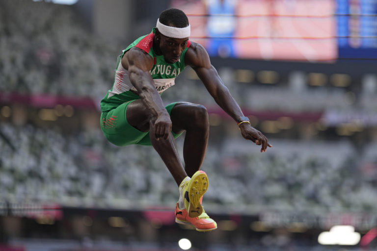 Portugalčan Pedro Pichardo vyhral súťaž trojskokanov na letnej olympiáde v Tokiu. Tokio, 5. august 2021. Foto: SITA/AP.