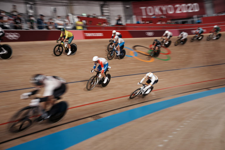 Cyklisti počas omnia v dráhovej cyklististike na letnej olympiáde v Tokiu. Tokio, 5. august 2021. Foto: SITA/AP.