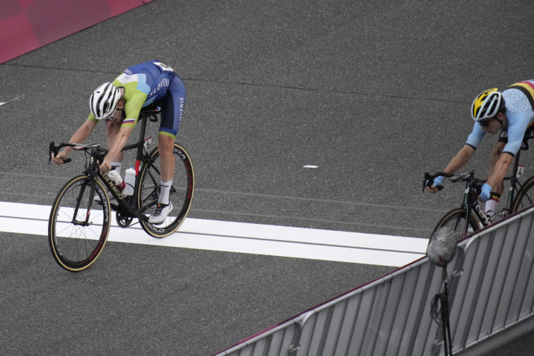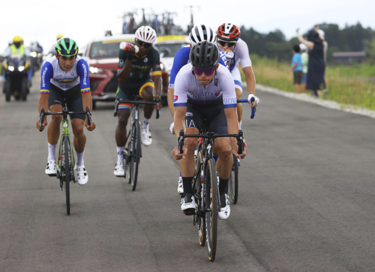 Slovenský cyklista Juraj Sagan počas cestných pretekov mužov s hromadným štartom na olympijských hrách v Tokiu. Japonsko, Tokio, 24. júla 2021. Foto: SITA/AP