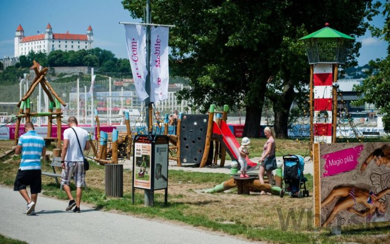 Bratislavská mestská pláž na Tyršovom nábreží je opäť k dispozícii pre všetkých a zadarmo až do septembra. Ľudí poteší aj množstvo možností, ako si zašportovať s priateľmi aj rodinou. Foto: SITA/Slovak Telekom