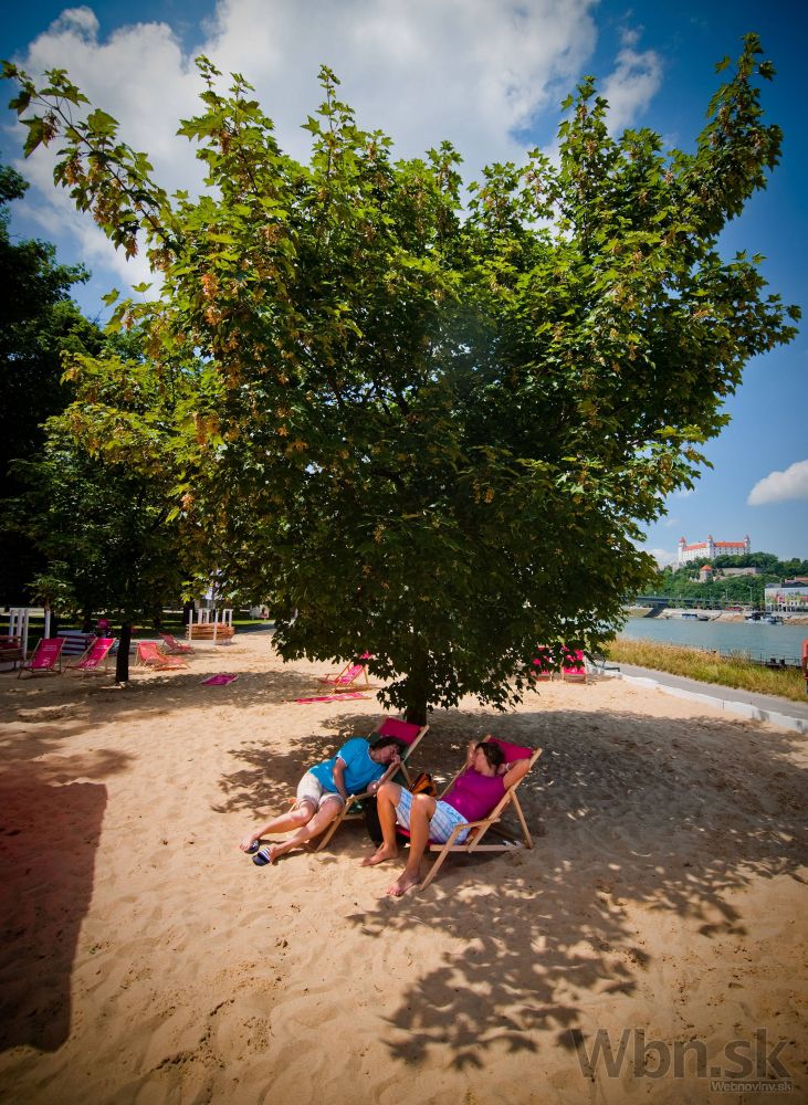 Bratislavská mestská pláž na Tyršovom nábreží je opäť k dispozícii pre všetkých a zadarmo až do septembra. Ľudí poteší aj množstvo možností, ako si zašportovať s priateľmi aj rodinou. Foto: SITA/Marián Peiger