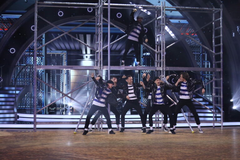 Úvodné číslo 5. kola Let’s Dance 2025 predviedli špeciálna porotkyňa Nela Pocisková, Matyáš Adamec a KRS Movement. Bratislava, 30. marec 2025. Foto: TV Markíza.