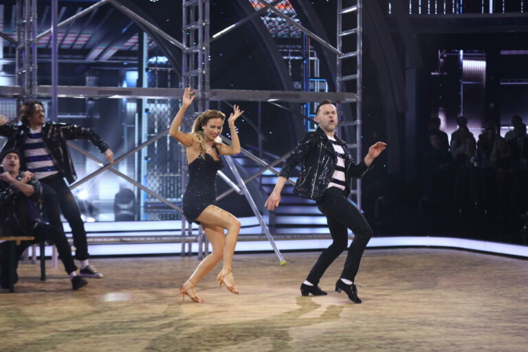 Juraj Kemka a Natália Glosíková si v 5. kole Let’s Dance 2025 „strihli“ jive na skladbu Jailhouse Rock od Elvisa Presleyho. Bratislava, 30. marec 2025. Foto: TV Markíza.