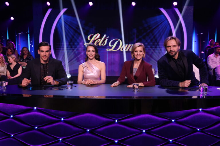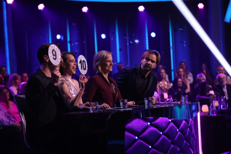 Zľava: Porota v zložení Adam Bardy, Gabriela Marcinková, Tatiana Drexler a Ján Ďurovčík počas tretieho kola Let’s Dance 2025. Bratislava, 16. marec 2025. Foto: TV Markíza.