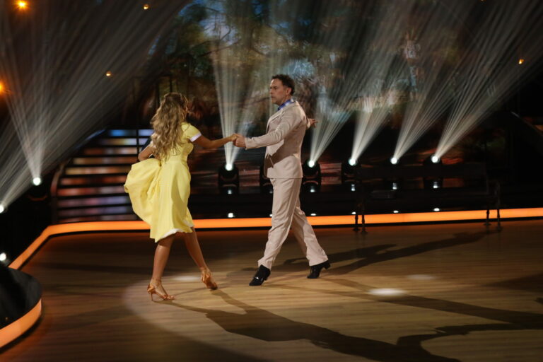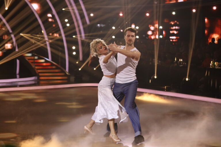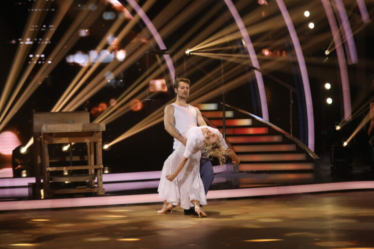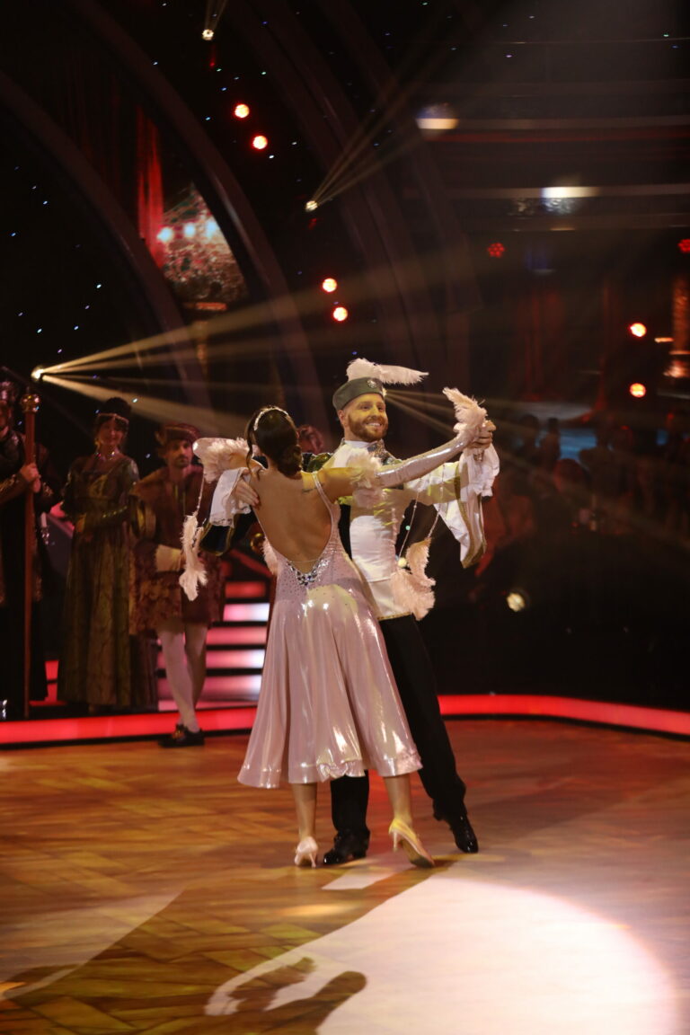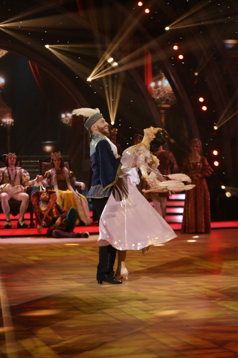 Romantické číslo inšpirované filmom Duch v treťom kole Let’s Dance 2025 viedenským valčíkom predviedli Marek Rozkoš a Natália Horváthová. Bratislava, 16. marec 2025. Foto: TV Markíza.