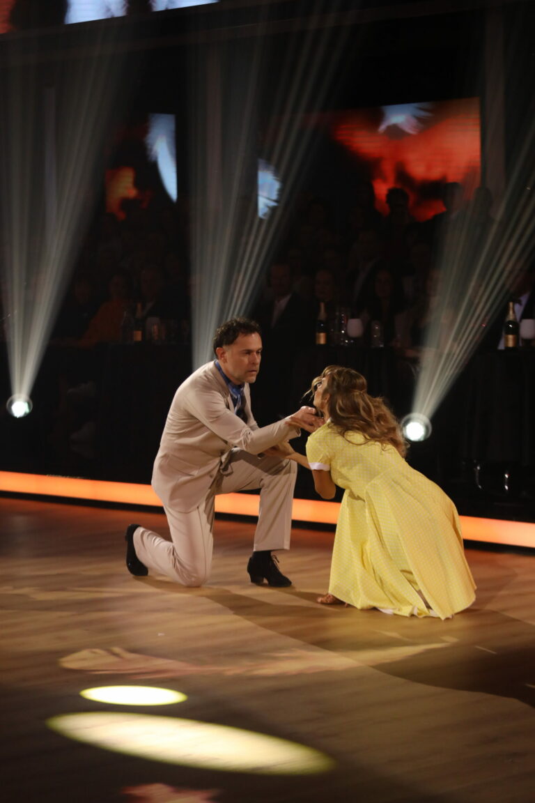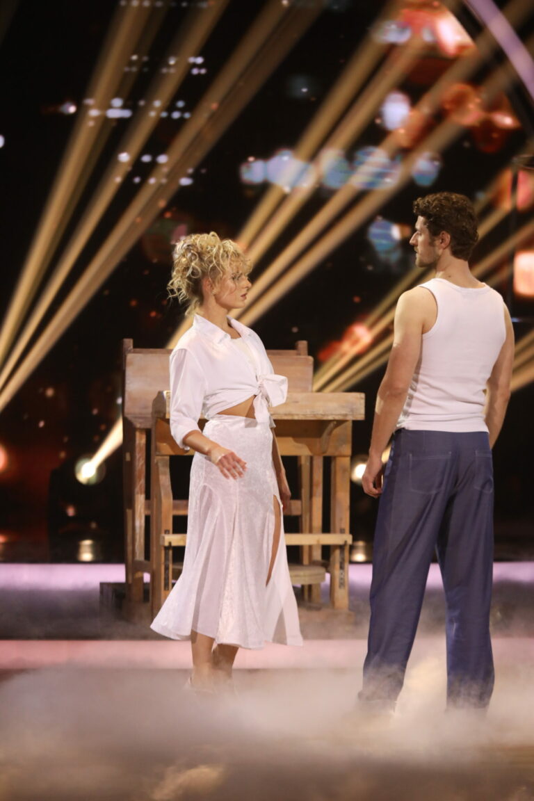 Zuzana Mauréry a Matej Chren v treťom kole Let’s Dance 2025 tancovali rumbu a inšpirovali sa filmom Takí sme boli. Bratislava, 16. marec 2025. Foto: TV Markíza.
