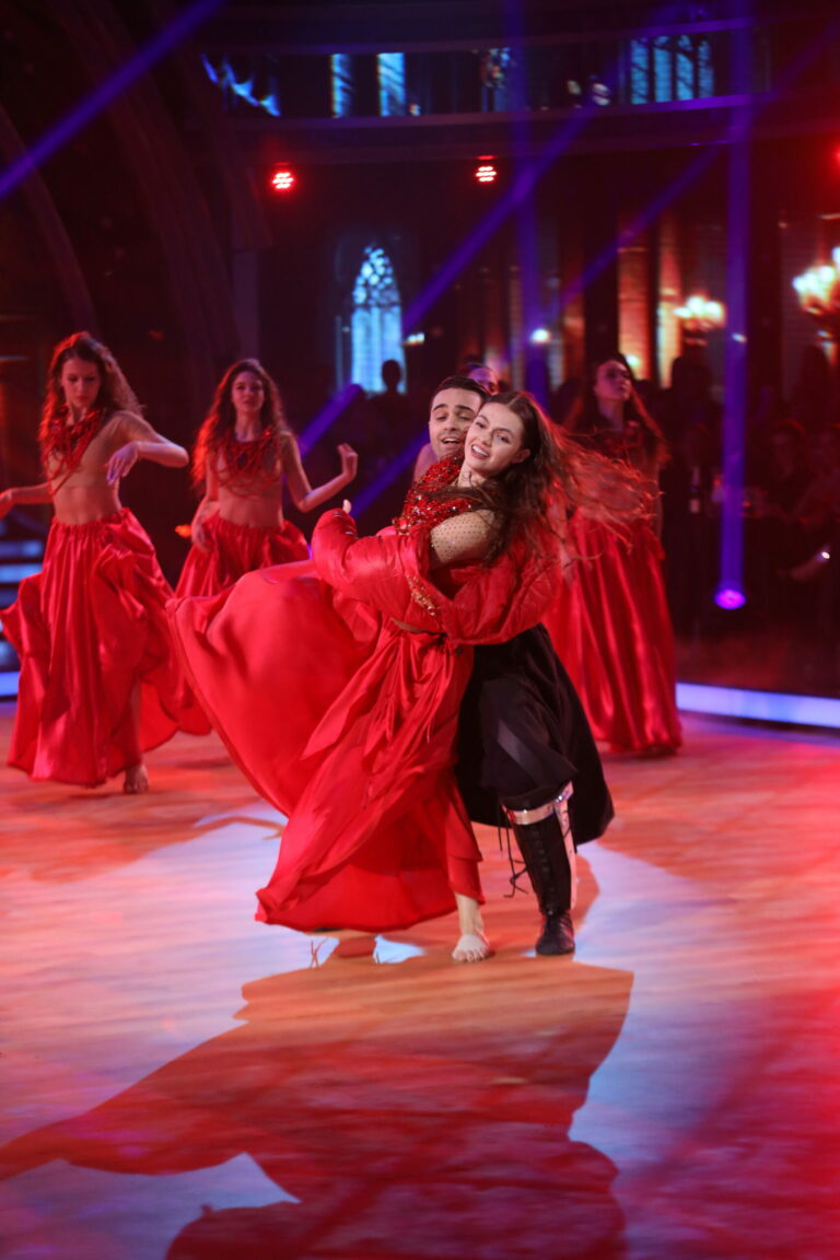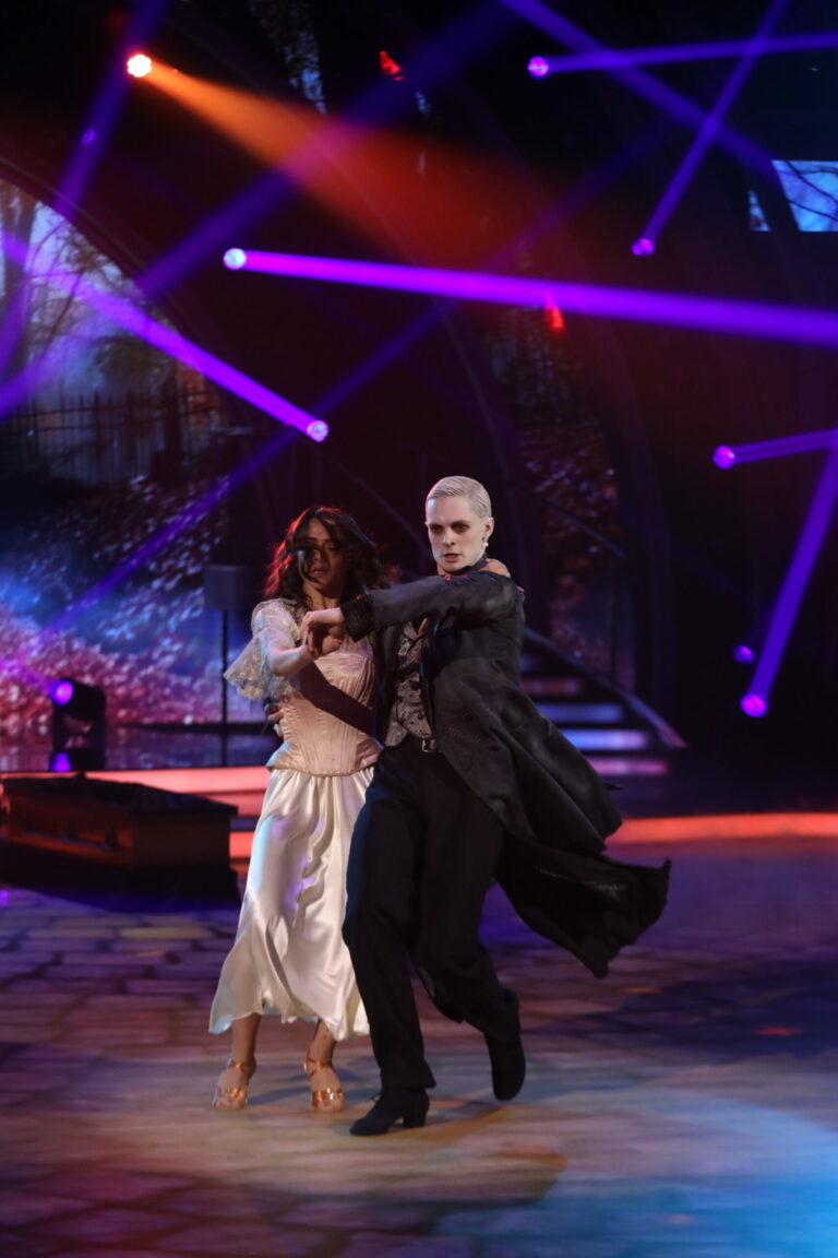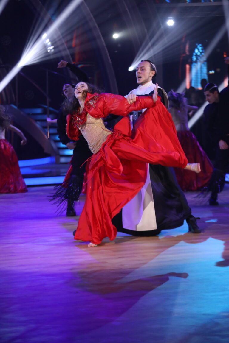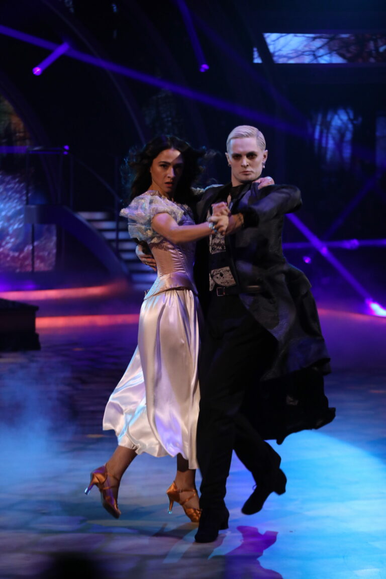 Horor z filmu Nosferatu na tanečný parketu priniesli Eva Burešová a Matyáš Adamec a zatancovali paso doble. Bratislava, 16. marec 2025. Foto: TV Markíza.