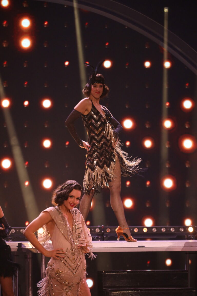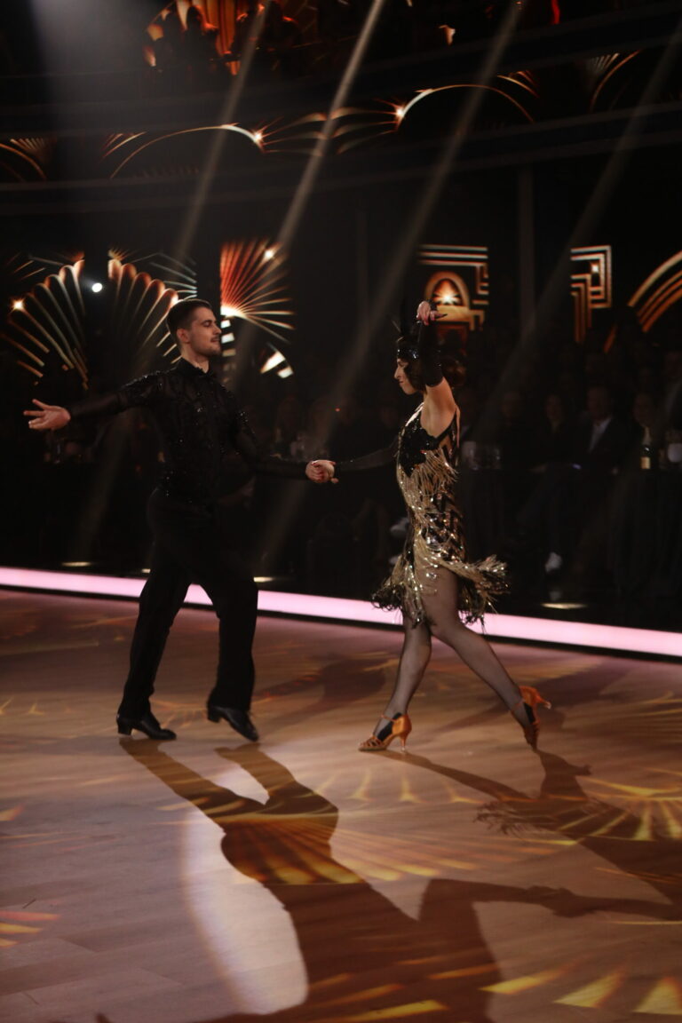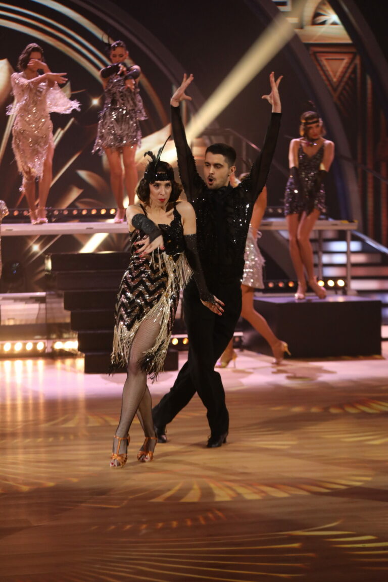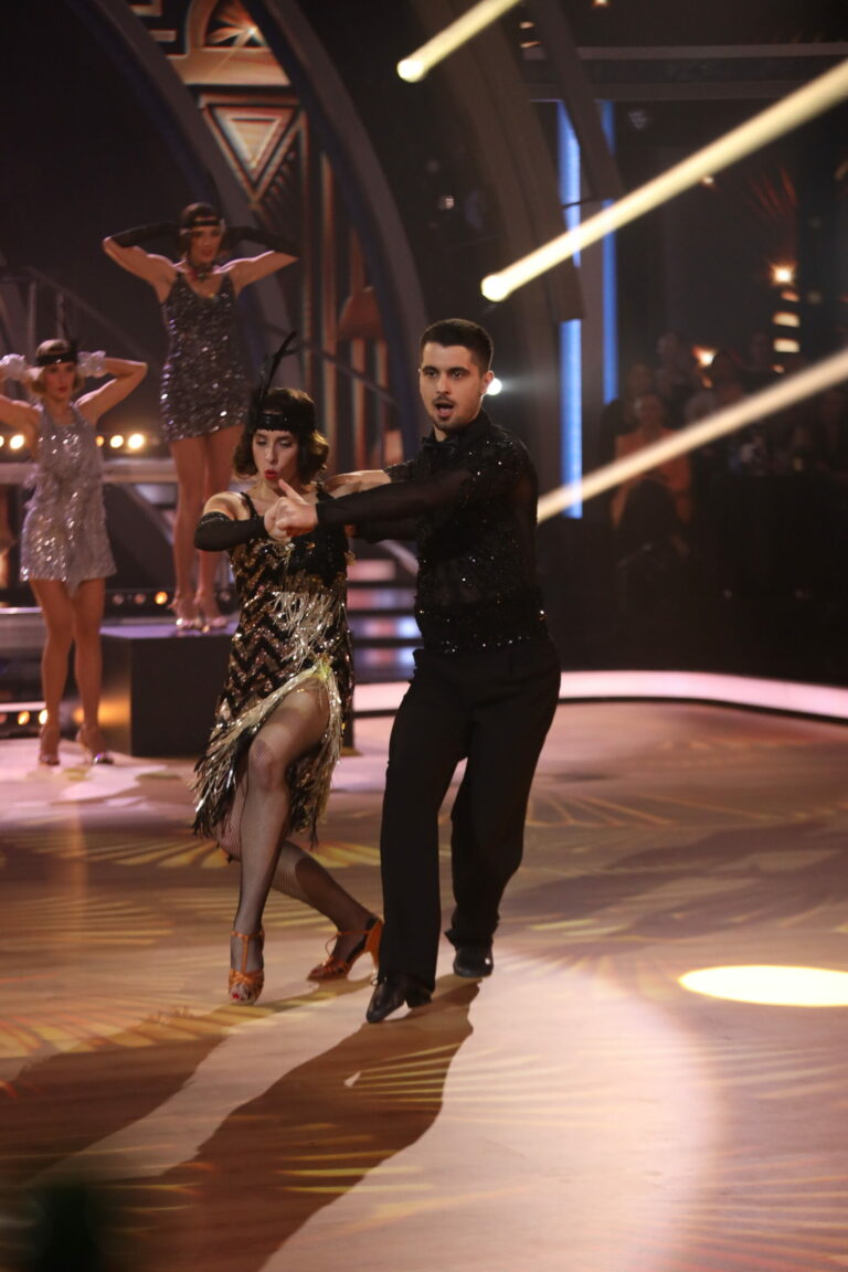 Zuzana Porubjaková a Jaroslav Ihring tancovali čaču na hit A Little Party Never Killed Nobody a ich čislo bolo inšpirované Veľkým Gatsbym. Bratislava, 16. marec 2025. Foto: TV Markíza.