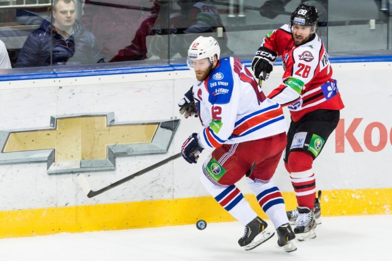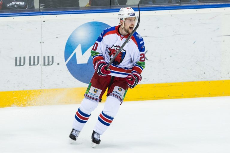 Hráč Lev Praha Petr Vrána počas tretieho zápasu semifinále play-off Západnej konferencie Kontinentálnej hokejovej ligy (KHL) medzi Donbas Doneck a HC Lev Praha. Bratislava, 23. marec 2014. Foto: SITA/Jozef Jakubčo