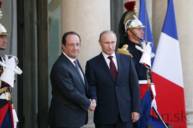 Ruský prezident Vladimir Putin si na oslavách výročia vylodenia v Normandii potriasol rukou s novým ukrajinským prezidentom Petrom Porošenkom. Foto: SITA/AP