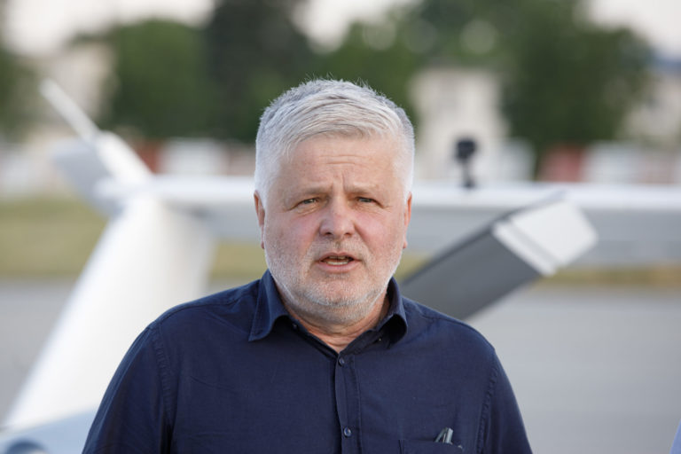 Investor Anton Zajac počas prvého príletu experimentálneho lietadla AirCar na Letisko M. R.Štefánika. Bratislava, 28. jún 2021. Foto: SITA/Branislav Bibel