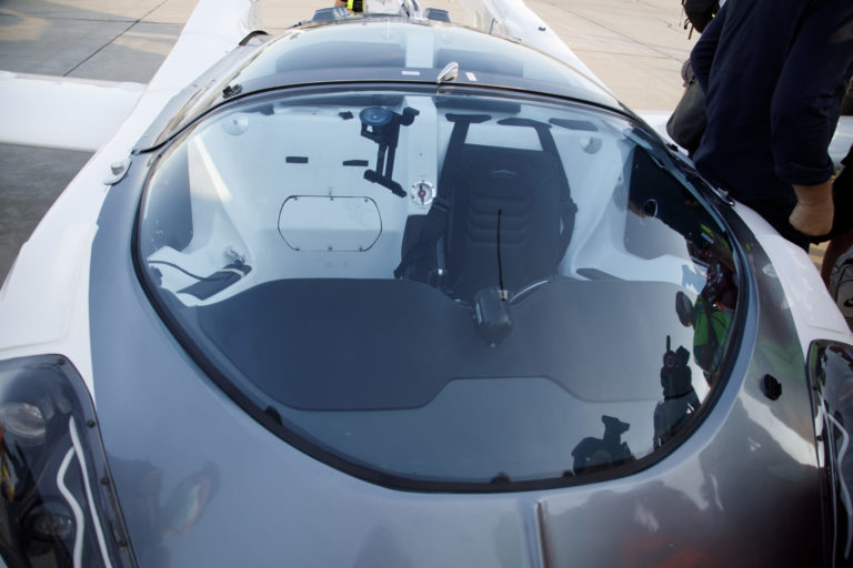 Detail experimentálneho lietajúceho auta AirCar počas prvého príletu na Letisko M. R. Štefánika. Bratislava, 28. jún 2021. Foto: SITA/Branislav Bibel