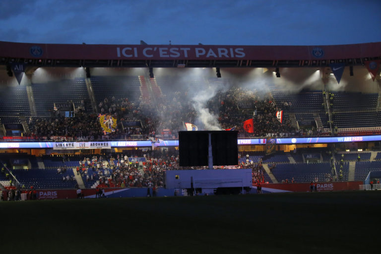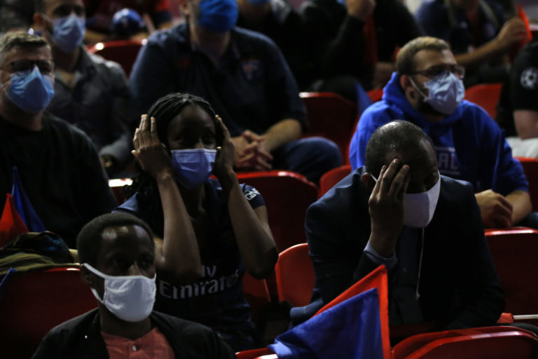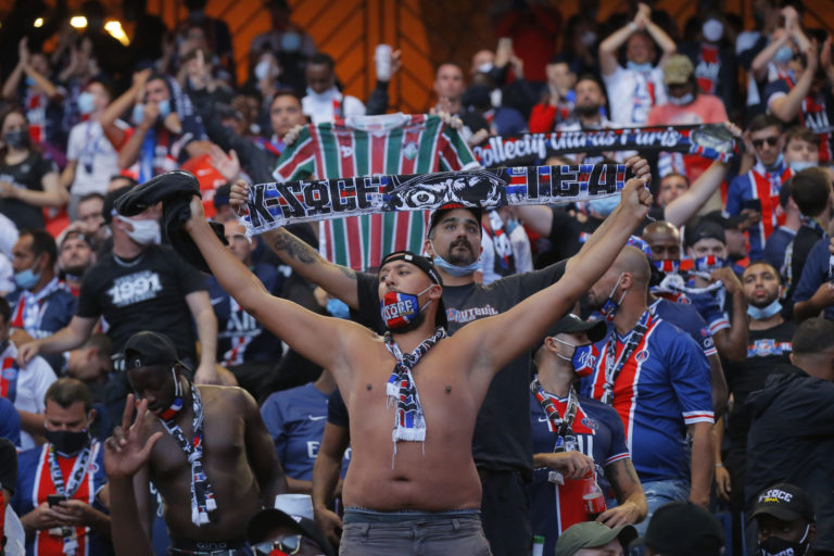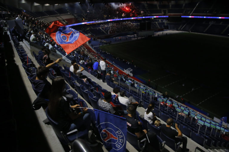Fanúšikovia PSG sledujú finále Ligy majstrov proti Bayernu na štadióne Park Princov v Paríži. Paríž, 23. august 2020. Foto: SITA/AP