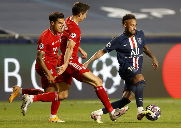 Hráč PSG Neymar (vpravo) kontroluje loptu počas finále Ligy majstrov na Estádio da Luz. Lisabon, 23. august 2020. Foto: SITA/AP