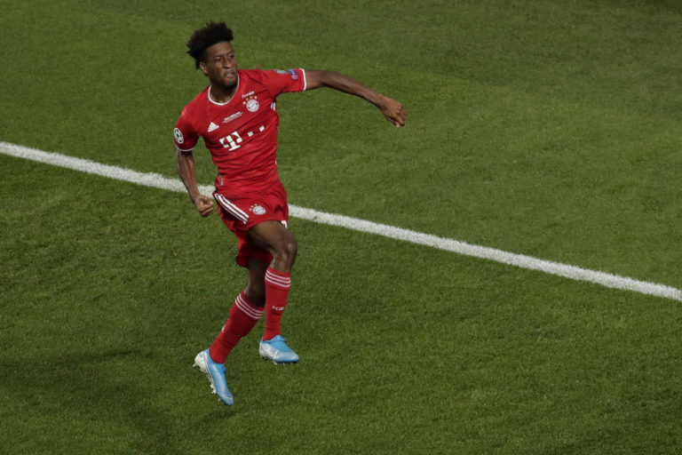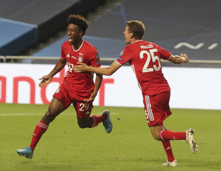 Hráč Bayernu Kingsley Coman oslavuje gól v sieti PSG počas finále Ligy majstrov na Estádio da Luz. Lisabon, 23. august 2020. Foto: SITA/AP