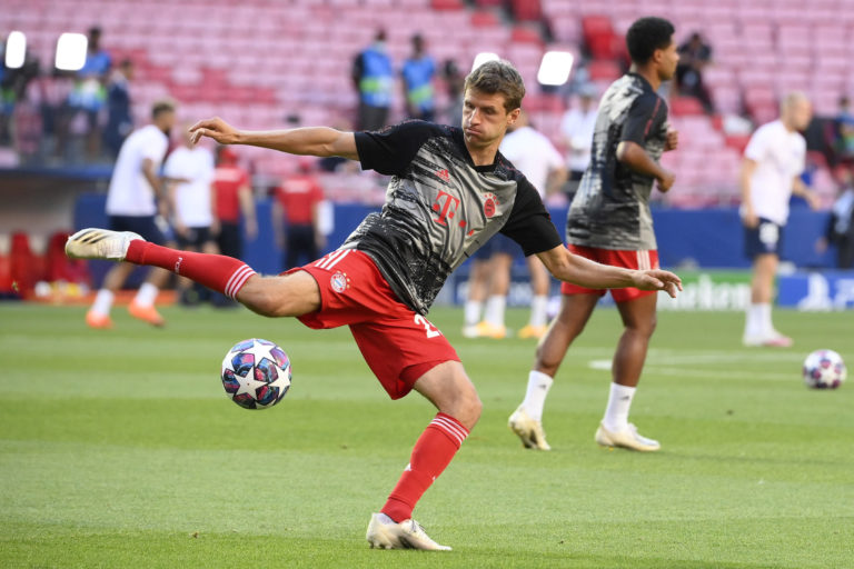 Thomas Müller (Bayern Mníchov) počas rozcvičky pred finále Ligy majstrov v Lisabone proti Parížu St. Germain. Lisabon, 23. august 2020. Foto: SITA/AP.