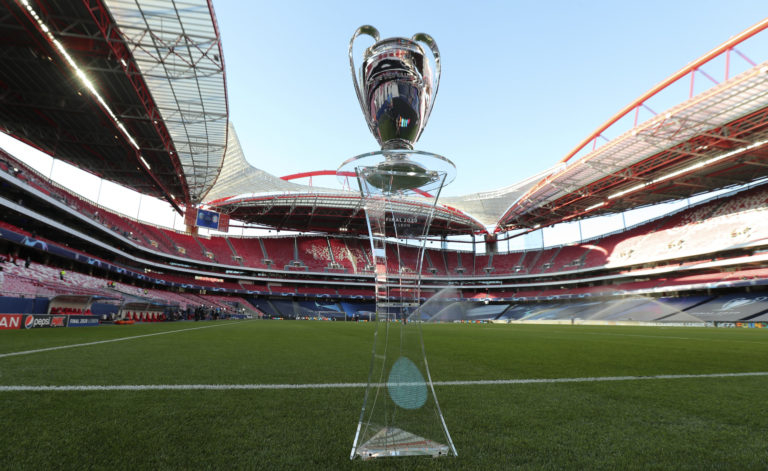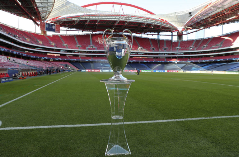 Trofej pre víťaza Ligy majstrov pred finálovým zápasu medzi PSG a Bayernom Mníchov na Estádio da Luz. Lisabon, 23. august 2020. Foto: Miguel A. Lopes/Pool via AP.