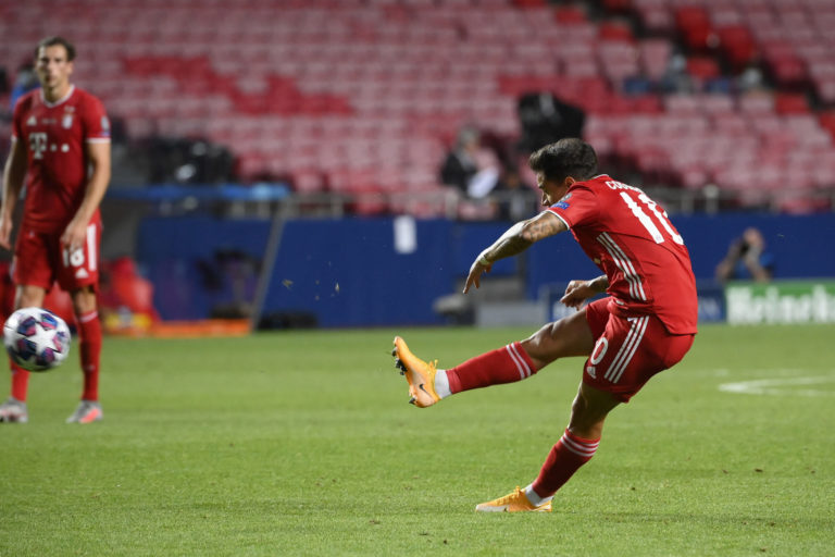 Hráč Bayernu Philippe Coutinho sa pokúša skórvať počas finále Ligy majstrov na Estádio da Luz. Lisabon, 23. august 2020. Foto: SITA/AP