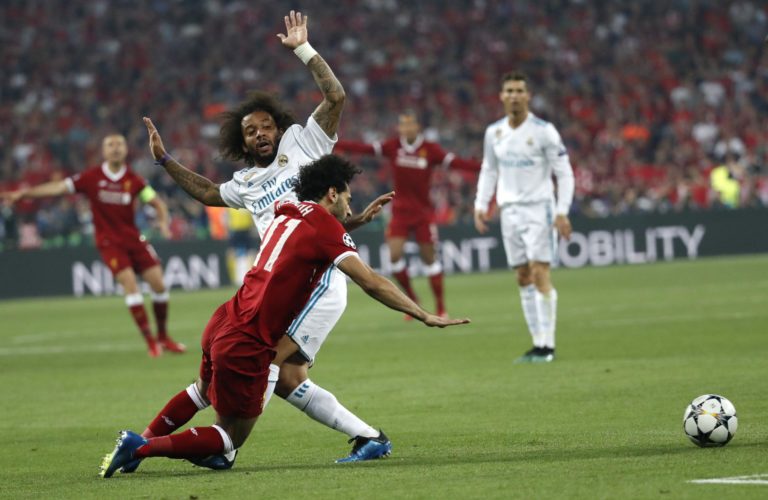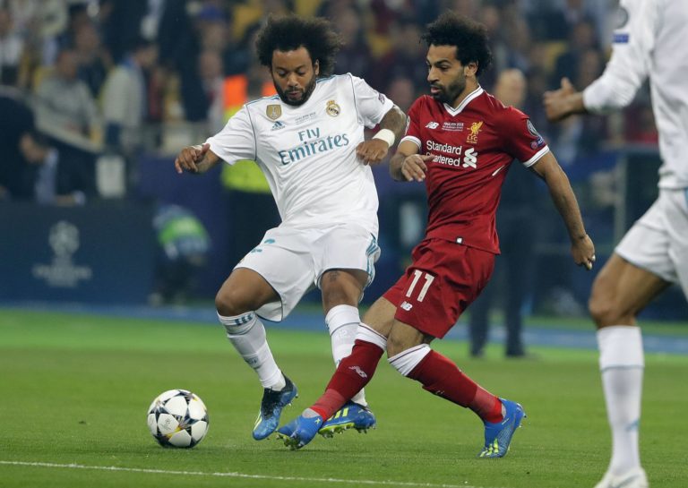 Marcelo z Realu Madrid v súboji proti Mohamedovi Salahovi z FC Liverpool počas finále Ligy Majstrov. 26. máj 2018 Foto: SITA/AP
