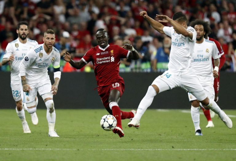 Sadio Mane z FC Liverpool, vstrede, v súboji proti Casemirovi z Realu Madrid počas finále Ligy majstrov. 26. máj 2018 Foto: SITA/AP