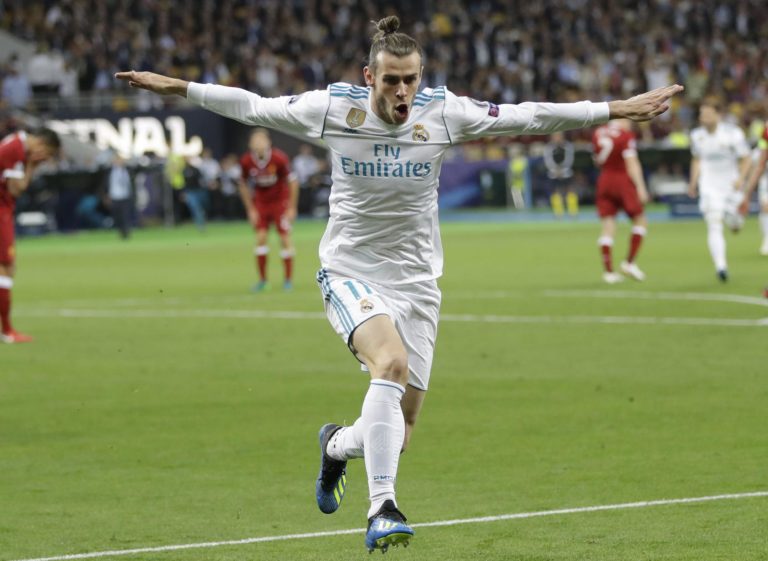 Gareth Bale oslavuje svoj prvý gól vo finále Ligy majstrov proti FC Liverpool. 26. máj 2018 Foto: SITA/AP