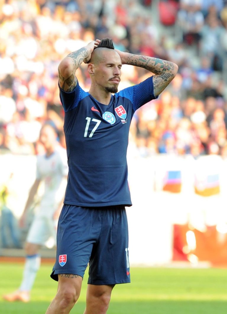 Slovenský futbalista Marek Hamšík počas zápasu Ligy národov proti Česku. Trnava, 13. október 2018. Foto: archívne, SITA/Martin Havran