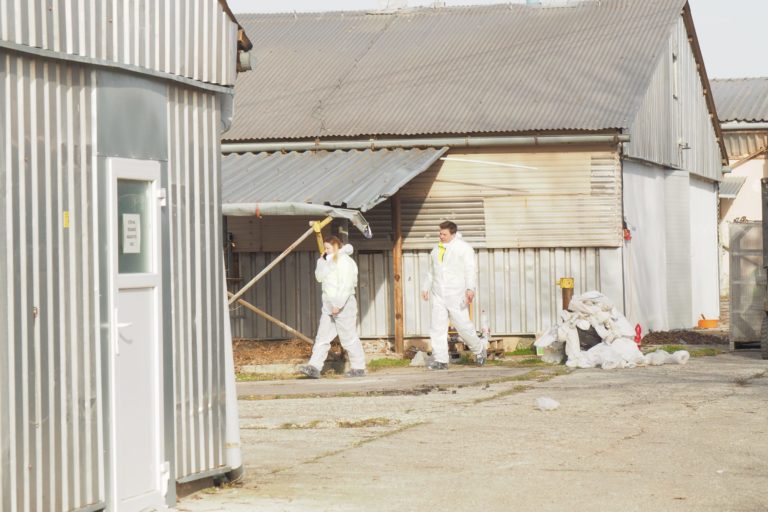 Likvidácia celého chovu hydiny na farme v Špačinciach z dôvodu potvrdenia výskytu vtáčej chrípky (H5N1). Špačince, 6. február 2024. Foto: SITA/ Pavol Machovič