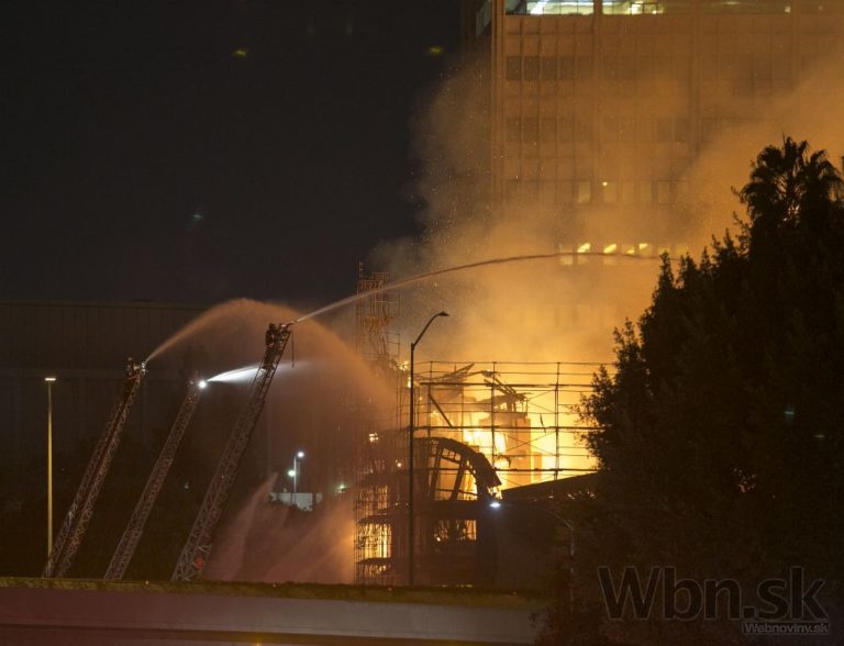 Kalifornské Los Angeles v pondelok zachvátil mohutný požiar, ktorý si vyžiadal uzavretie dvoch hlavných výpadoviek v meste. Foto: SITA/AP