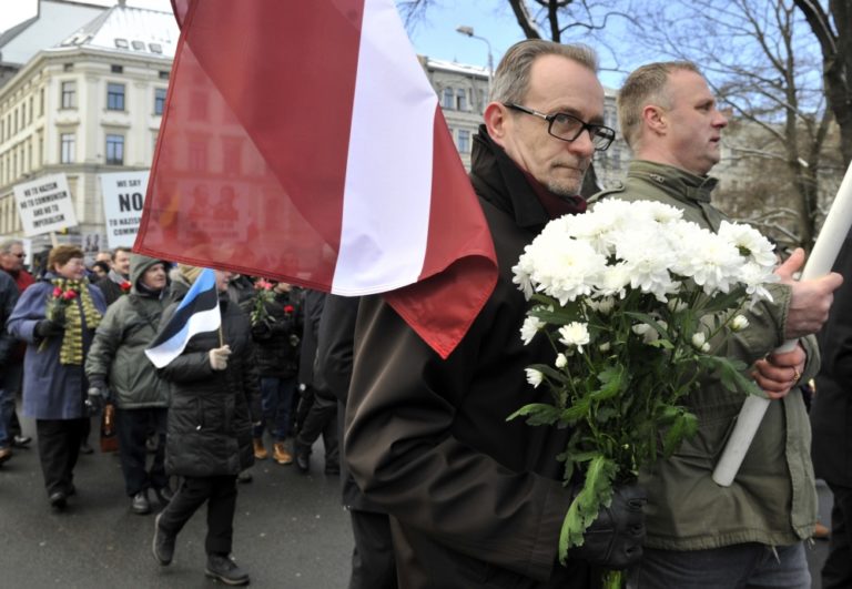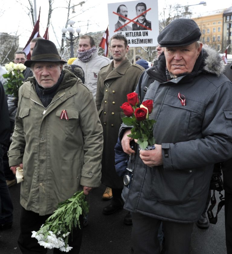 Asi 1500 Lotyšov sa v nedeľu zúčastnilo na pochode v rámci Dňa legionárov, ktorý oslavuje vojnových veteránov z tamojších nacistických divízií Waffen SS. Účastníci za dozoru polície pochodovali k Pamätníku slobody v Rige. Foto: SITA/AP