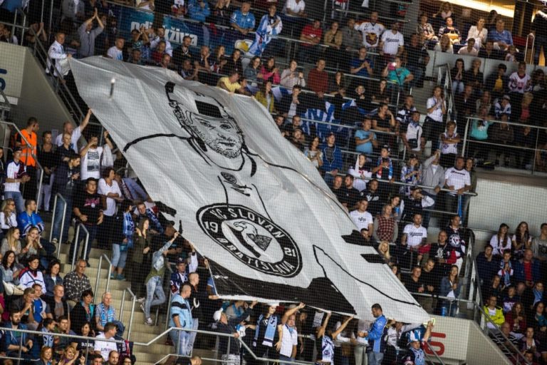 Fanúšikovia počas exhibičného hokejového zápasu s názvom Finále 17: Legendy Slovana vs Zlatí Chlapci. Bratislava, 11. august 2016. Foto: SITA/Marko Erd
