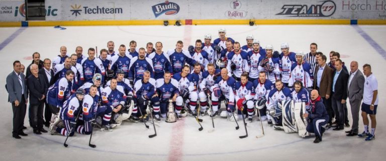 Hráči z tímu Zlatí Chlapci počas exhibičného hokejového zápasu s názvom Finále 17: Legendy Slovana vs Zlatí Chlapci. Bratislava, 11. august 2016. Foto: SITA/Marko Erd Foto: SITA/Marko Erd