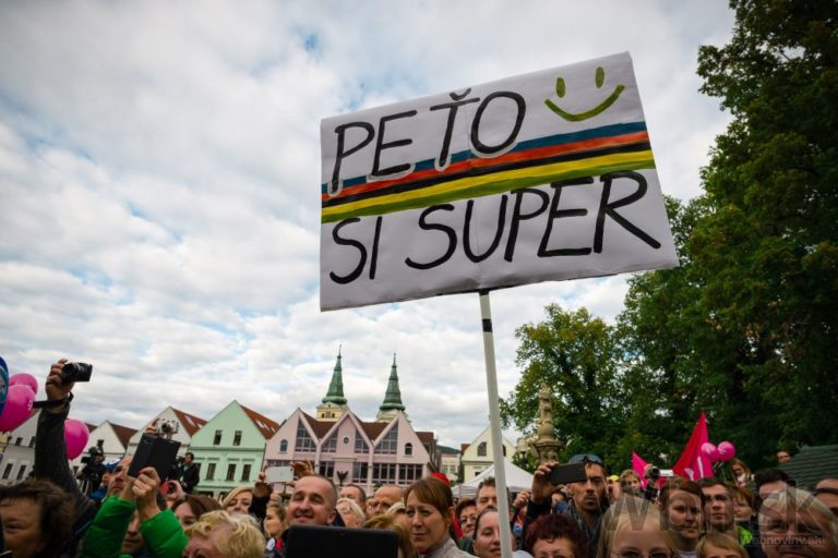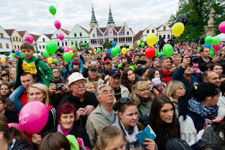 Atmosféra na Mariánskom námestí v Žiline počas vystúpenia majstra sveta v cestnej cyklistike v kategórii elite Petra Sagana v rámci podujatia "Vitaj Peťo". Žilina, 30. september 2015. Foto: SITA/Milo Fabian