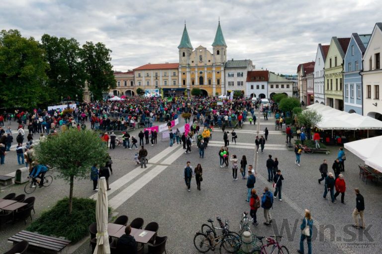 Atmosféra na Mariánskom námestí pred vystúpením majstra sveta v cestnej cyklistike v kategórii elite Petra Sagana. Žilina, 30. september 2015. Foto: SITA/Milo Fabian